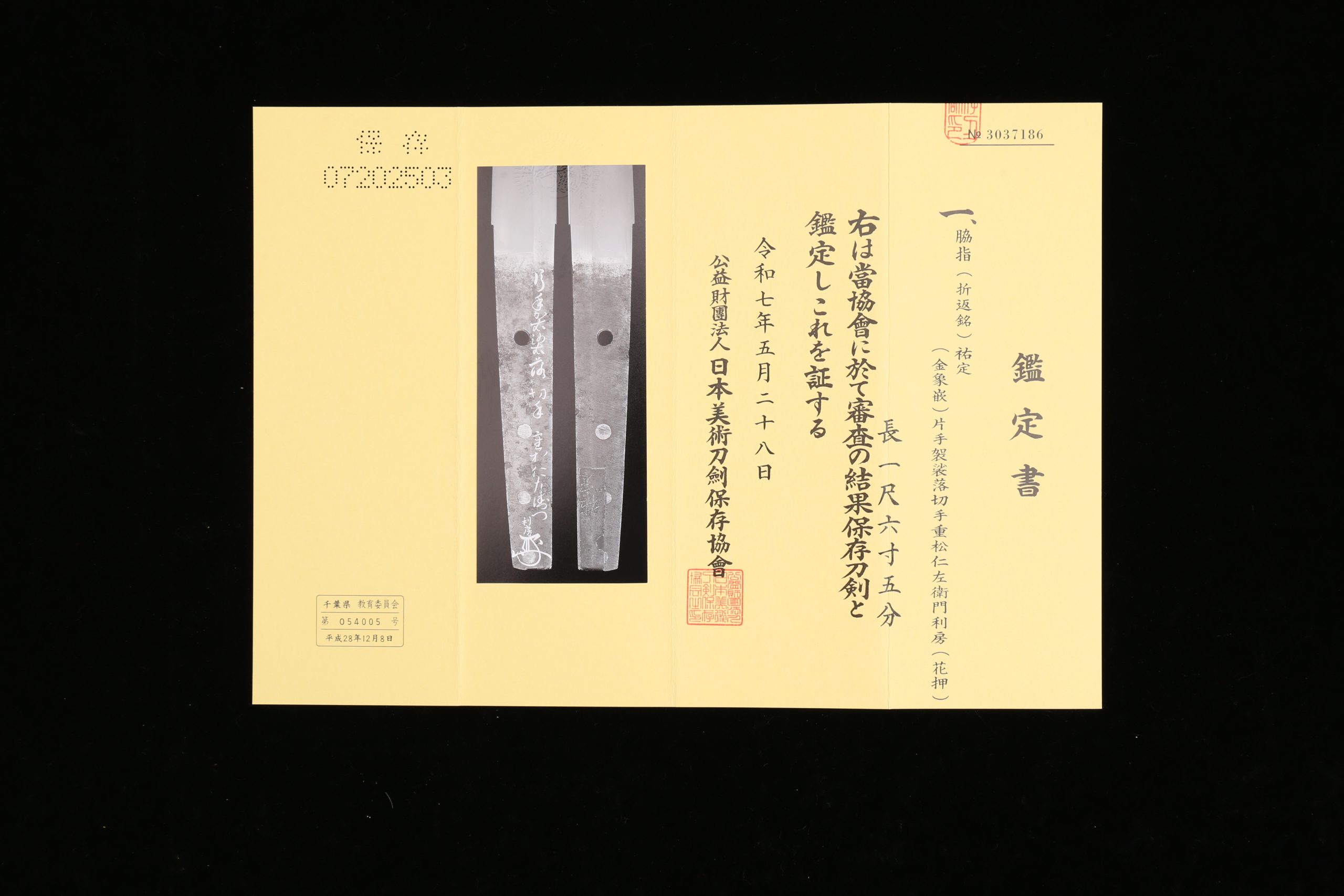 銘 (金象嵌月)年袈裟前切手重松仁左卫门利房(花押)