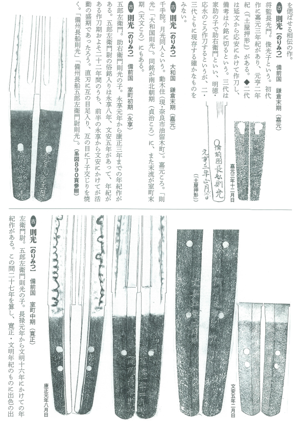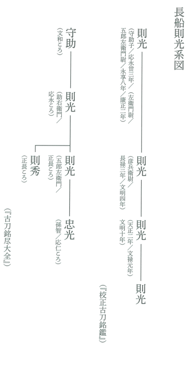 五郎左卫门,助右卫门则光之子,有永享元年、康正三年的纪年铭作品。五郎左卫门 的俗名入切铭为永享八年、文安五年,做刀期大致为二十二年。擅长风格为直刃、互目、 互目丁子。则光有数代之传承。![]()