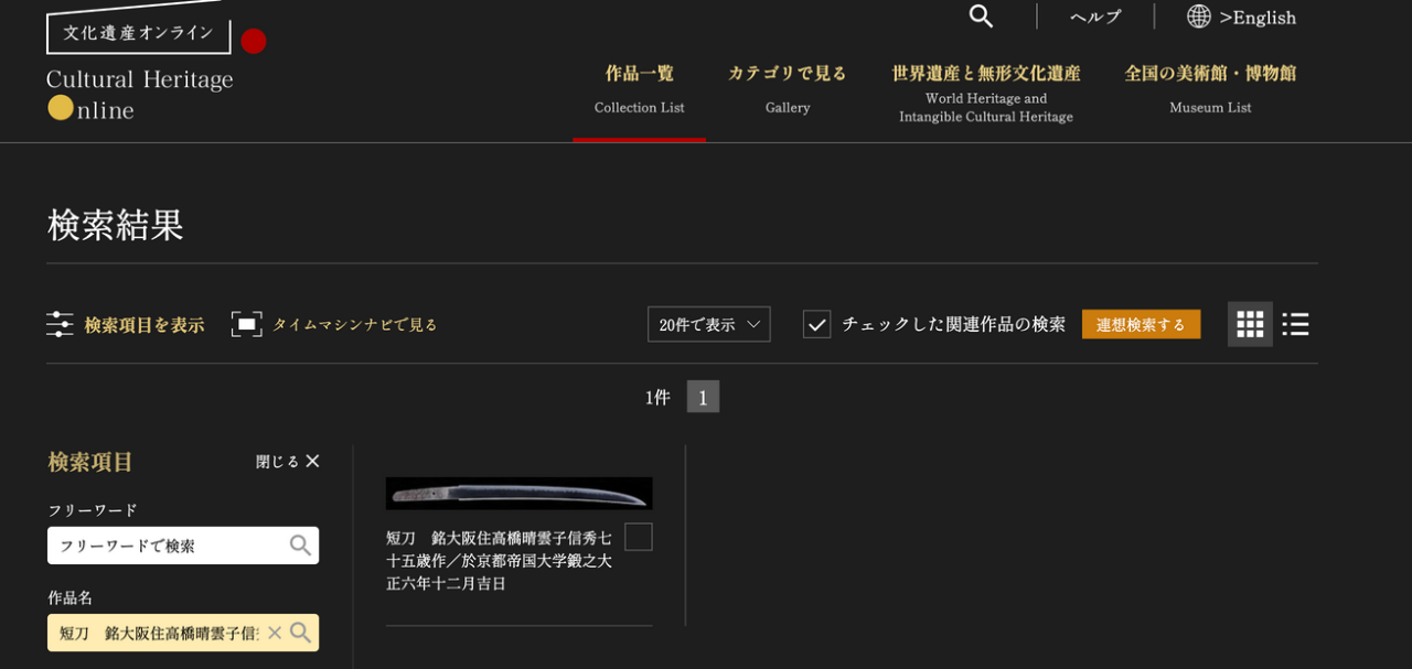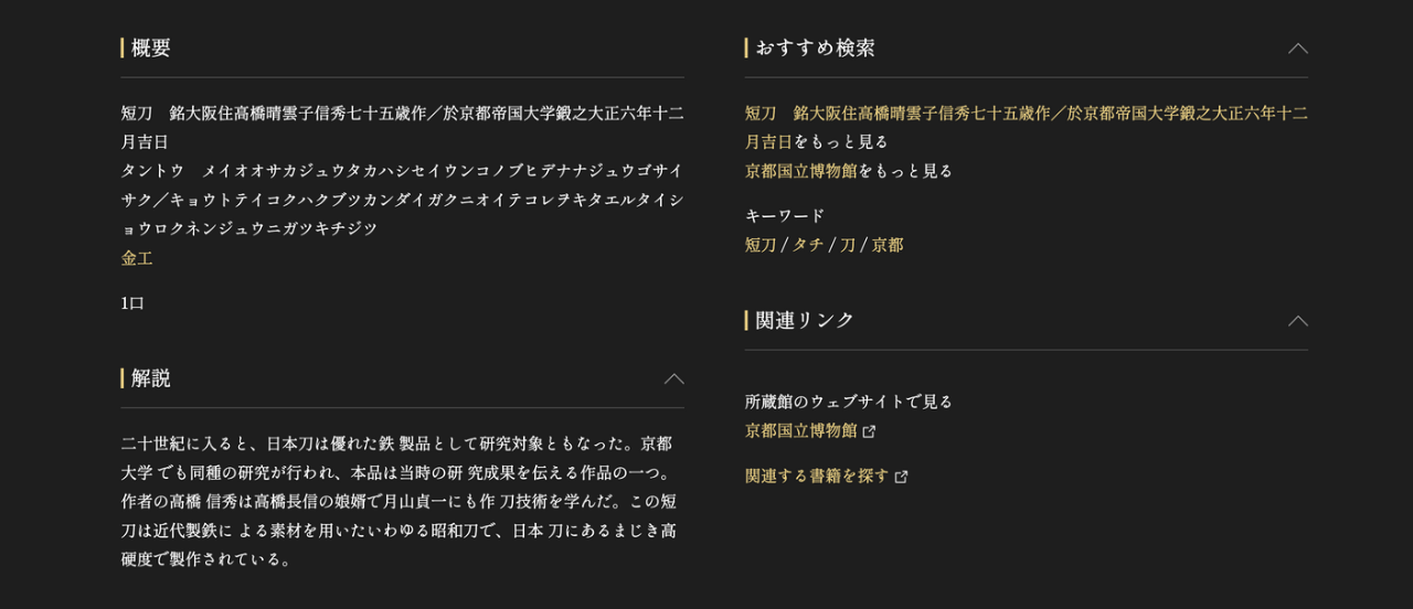 东京都国立博物馆有展出该刀工的作品,作为文化遗产。