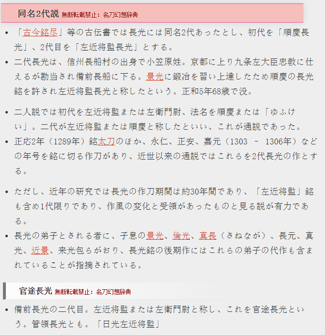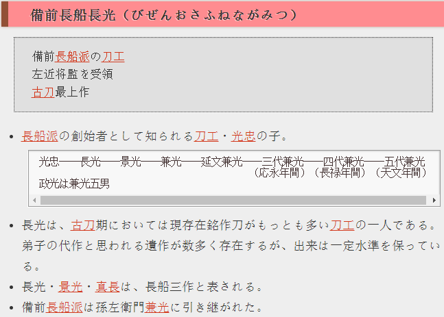 长光最有名者当属备前长船长光,在备前地区也出现了许多长光的同铭刀工,本作虽