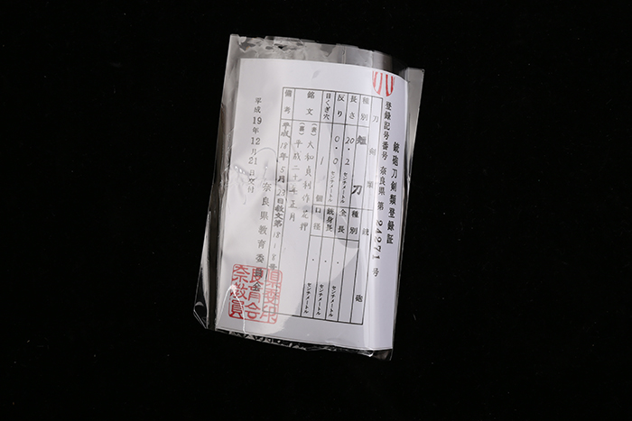 铭:大和贞利作(花押)平成二十年正月