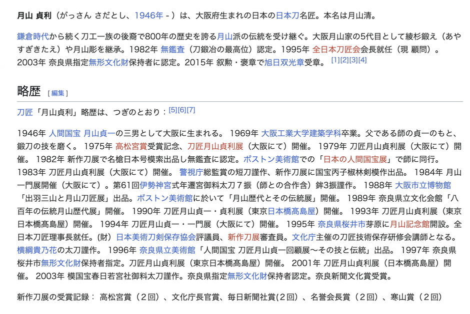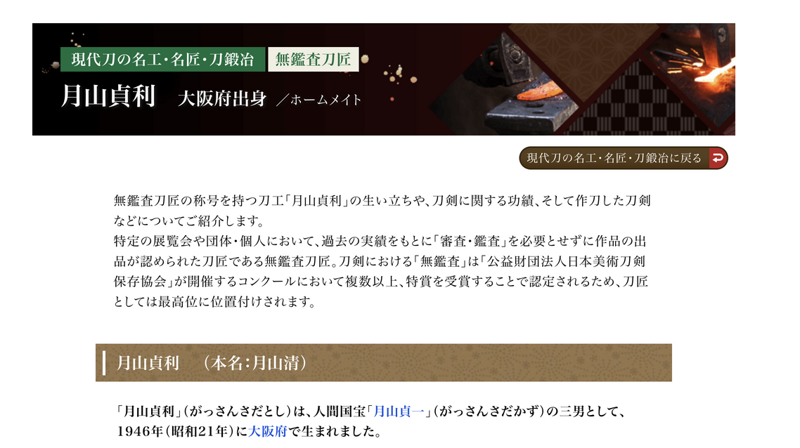 昭和57年被认定为无监察刀匠。