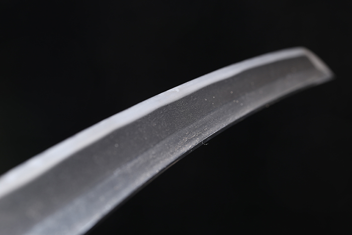 地铁多为锻炼细密的小板目肌 因其独特的风格被称“小糠肌” 刃文沸出来的直刃![]()