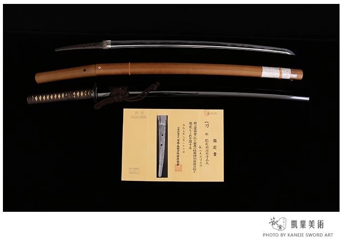 特别保存刀剑 新刀上作 编号:26008W 刃长:70.5cm(二尺三寸三分) 反:1.0cm 元幅:29.6mm 先幅:18.6mm 元重:8.8mm 先重:6.3mm 目钉穴:2个